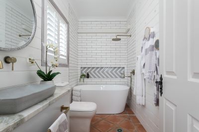 Upstairs are three generous bedrooms, all with built in robes and balconies to take in the North facing bay views. The master bedroom offers a "his and hers" walk in robe, along with ensuite which includes bath, shower and toilet. There is also a family bathroom with shower and vanity along with separate toilet to service the other two bedrooms.