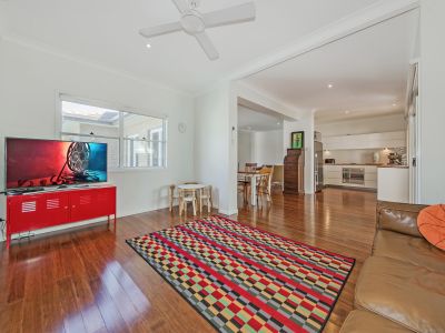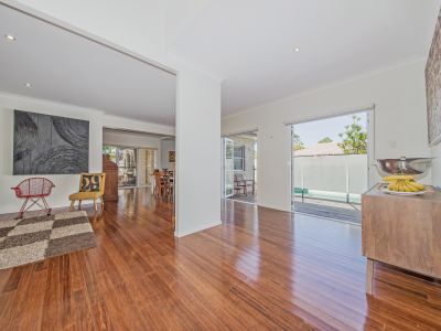 A warm and inviting ambiance is created by the blend of glossy timber floors, high ceilings and a flowing open plan design.