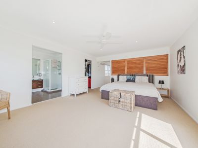 Upstairs offers the master bedroom with walk in robe and large ensuite as well as water views to the East. There is also a second bedroom on this floor with an ensuite. A huge office space or second living room has been created for those who work from home or to accommodate a large family.