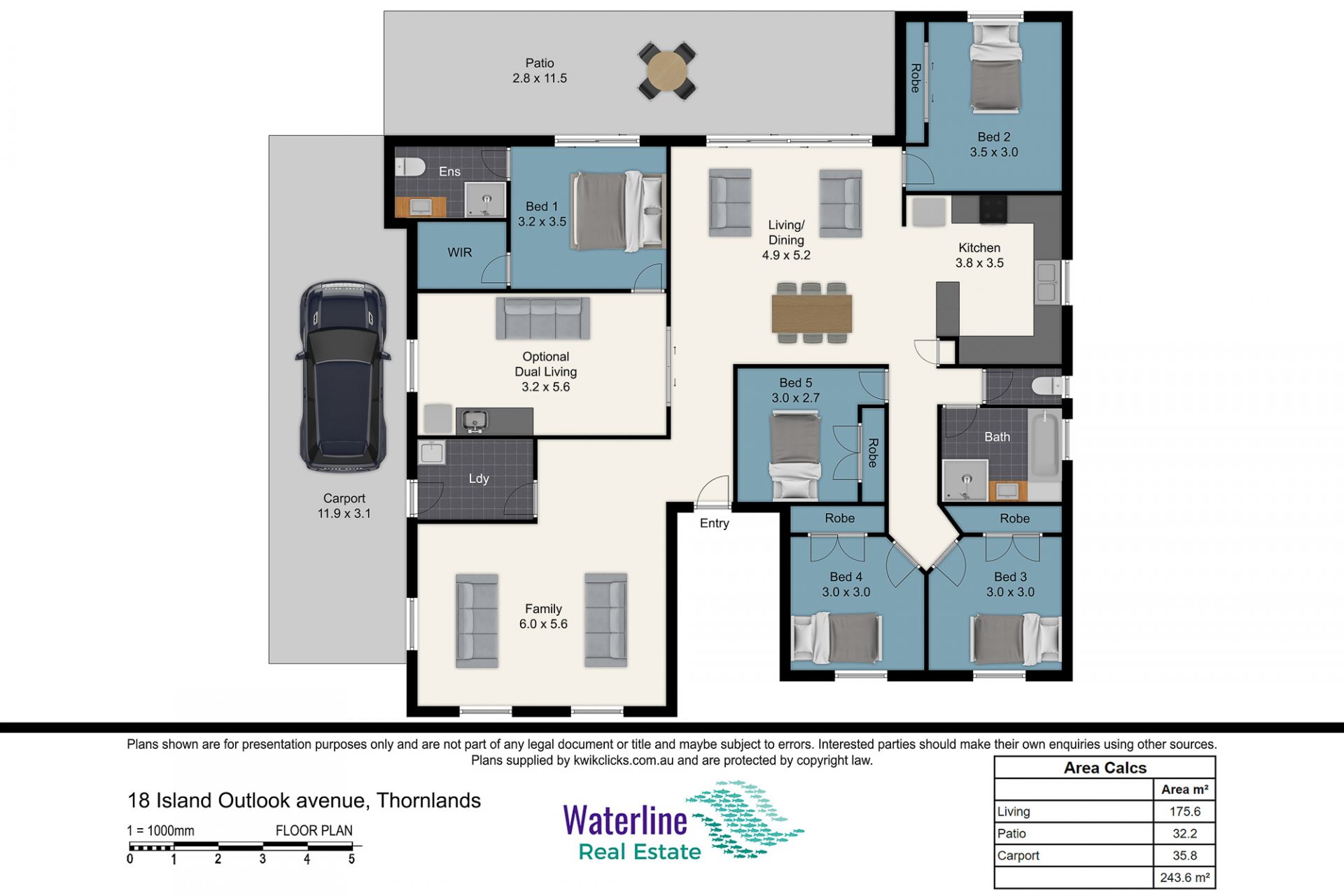 This property offers 5 generous bedrooms with built in robes, master with ensuite and walk in robe. The open plan kitchen overlooks a living and dining area which leads out to the covered alfresco dining and private rear backyard with garden shed. There is also a large separate media room and third living area with its own built in kitchenette and private access.