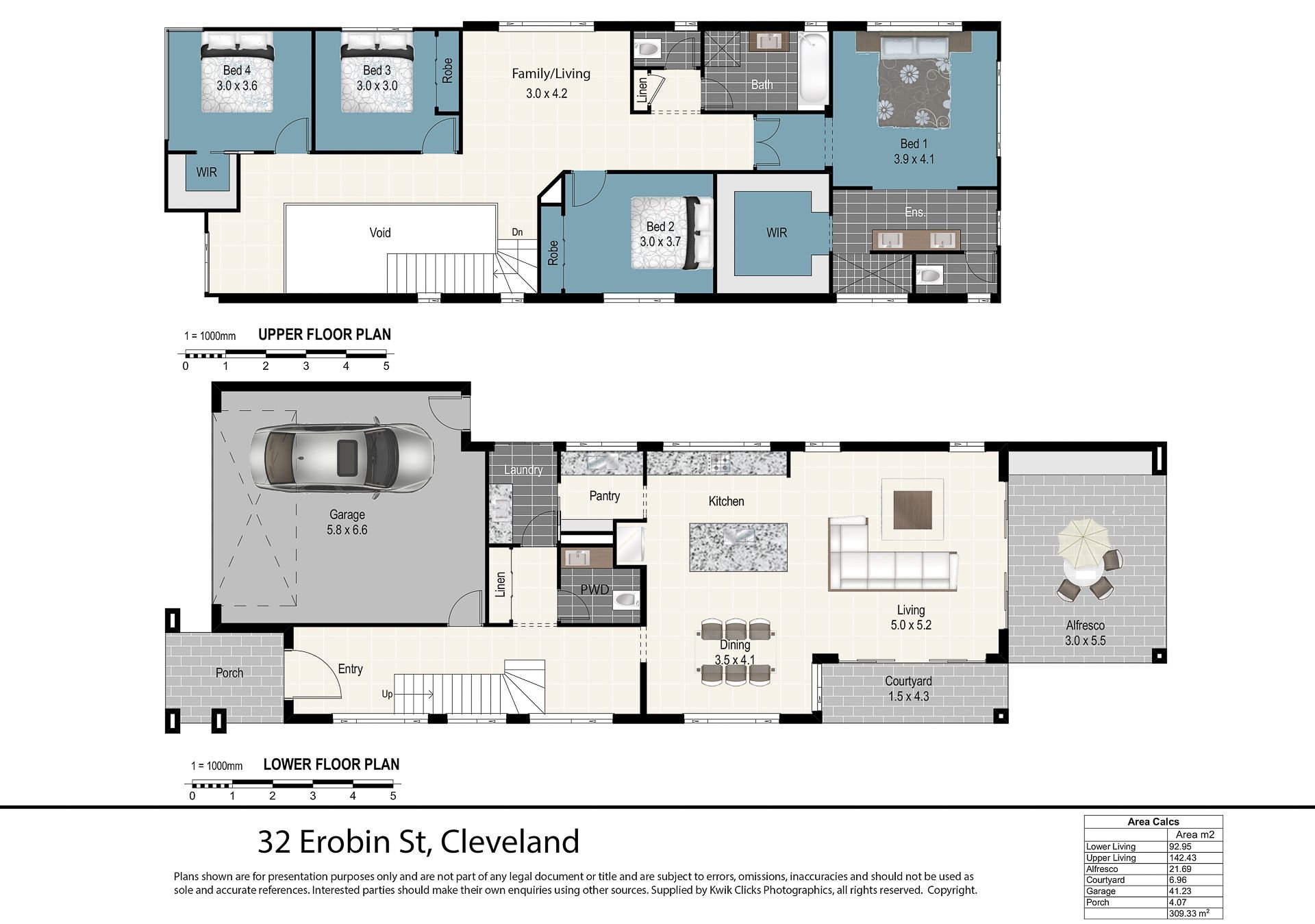 Upstairs are 4 generous bedrooms, all with built in robes. The master offers a stunning ensuite with stone benches, double vanity, walk in shower and separate toilet. The enormous walk in robe offers ample hanging and storage space and this bedroom is set privately away from the other bedrooms. There is a large upstairs lounge area and study nook as well as separate family bathroom with stone bench, bath, shower and vanity, separate toilet and large linen cupboard.