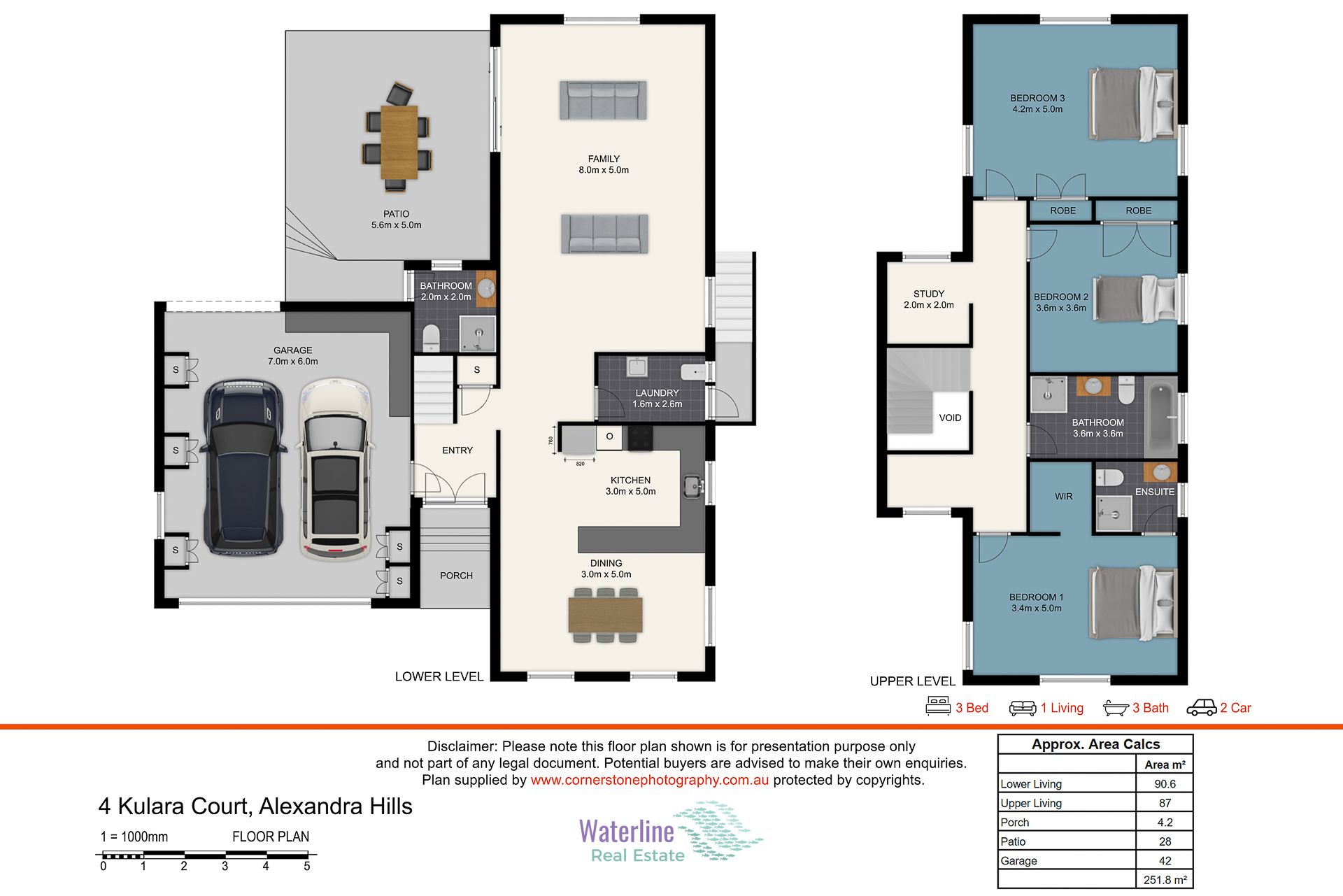 Upstairs there are 3 generous sized bedrooms. The master has an ensuite and built in robe and the other 2 bedrooms have built in robes. All rooms have large windows offering loads of natural light and views across the adjacent bushland. There is also a quirky study area and second family bathroom with bath, shower and toilet.