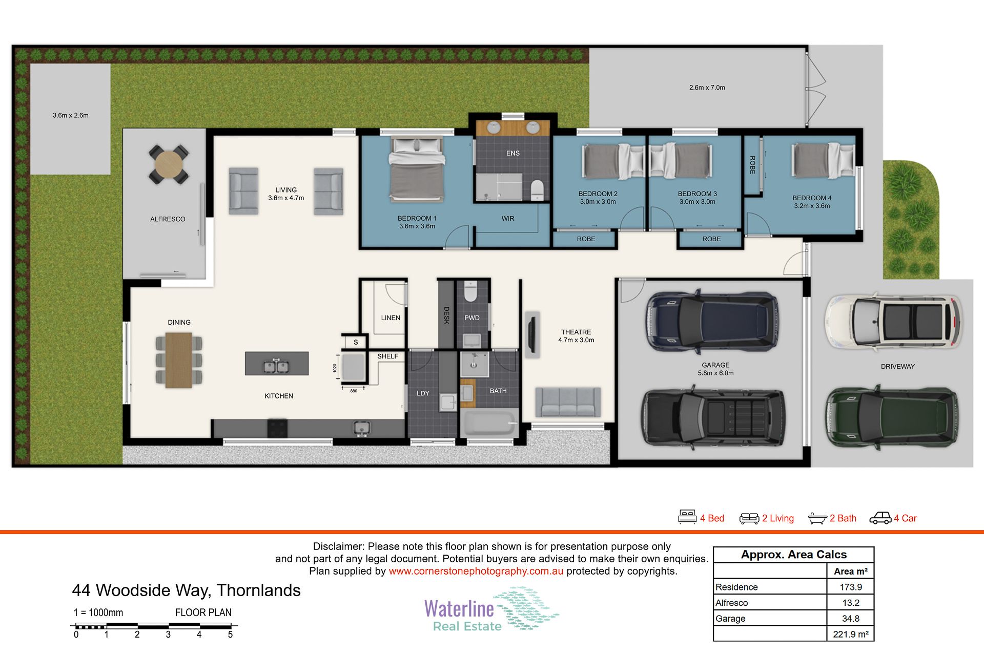 Beautifully designed with luxury in mind, this 3 year old family home offers 4 generous bedrooms with built in robes and master with ensuite and walk in robe. The stunning gourmet kitchen with beautiful appliances, walk in pantry and butlers area, overlooks the enormous family living and dining areas which lead out to the covered alfresco dining and private rear landscaped garden. There is also a separate media room.